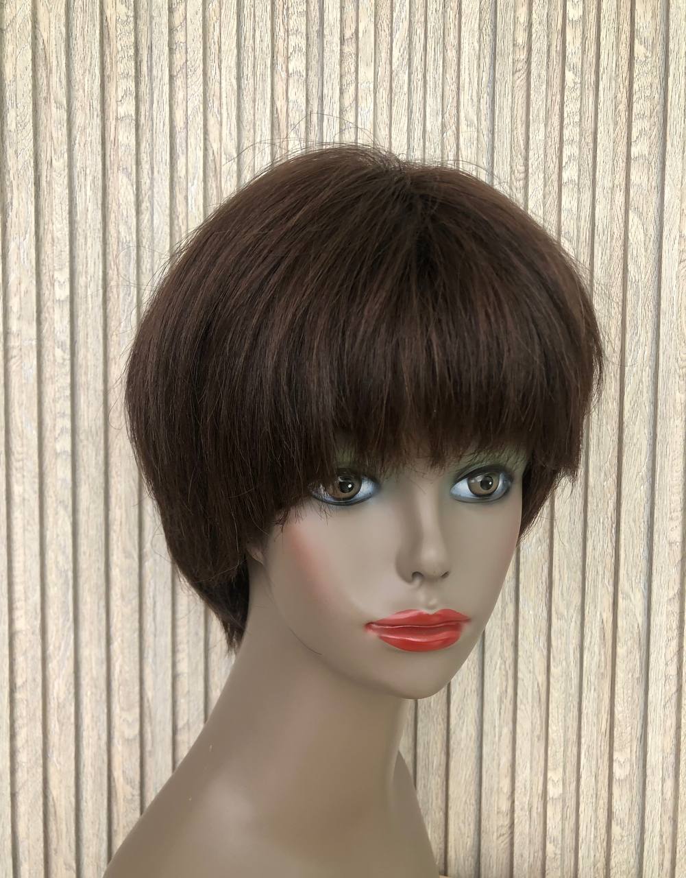 Перука виготовлена з натурального волосся, імітація шкіри голови, можна змінювати проділ, стригти, тонувати, фарбувати.